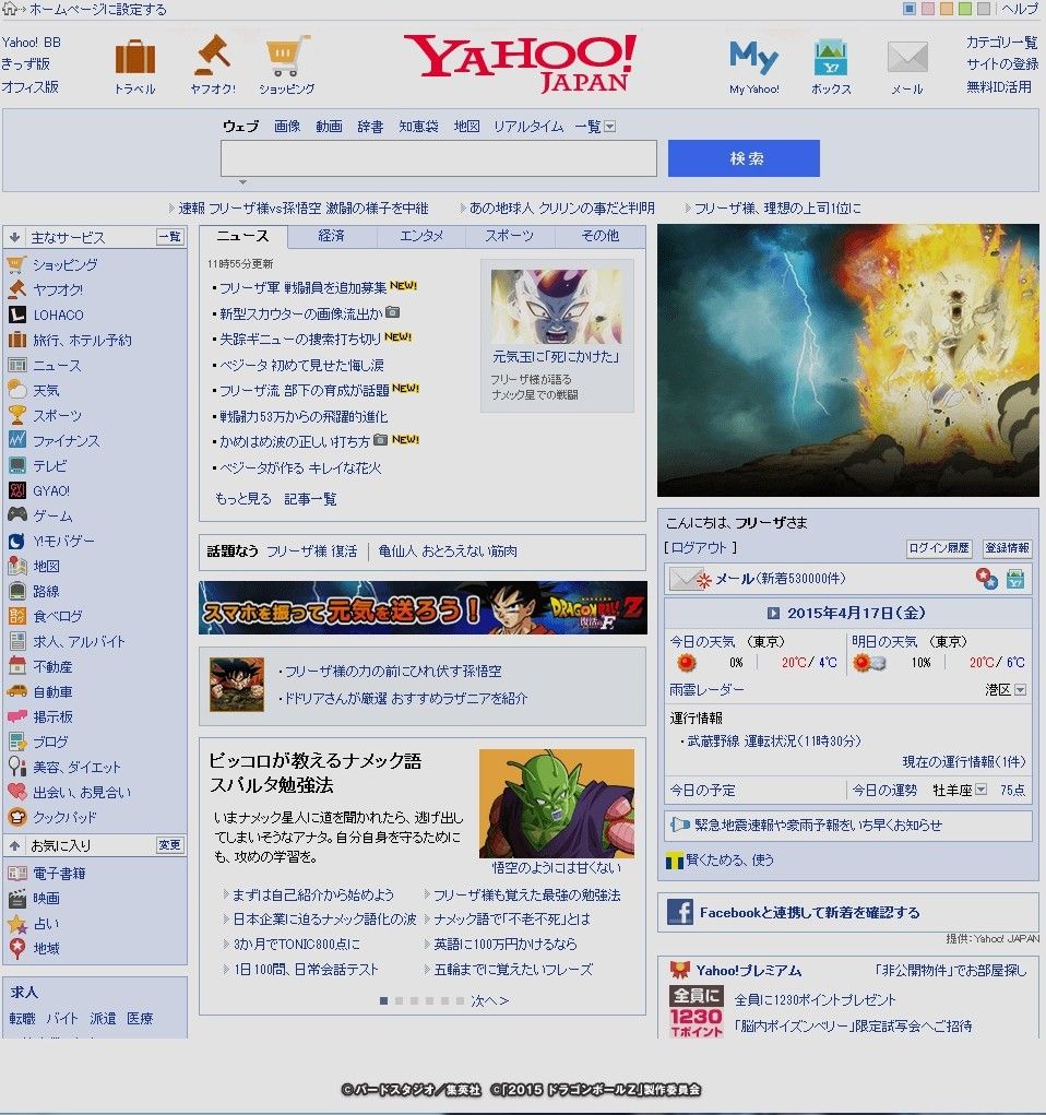【画像】フリーザ様、Yahoo!トップを乗っ取るwwwwwwww【ドラゴンボール】