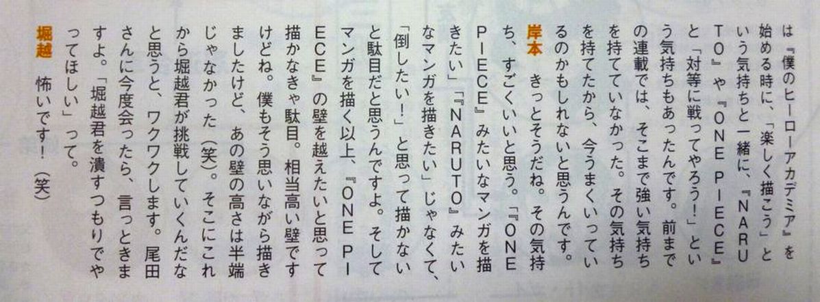 まんがあんてな: 堀越先生「僕のヒーローアカデミアはワンピースと対等に戦ってやろうという気持ちで描いてる」