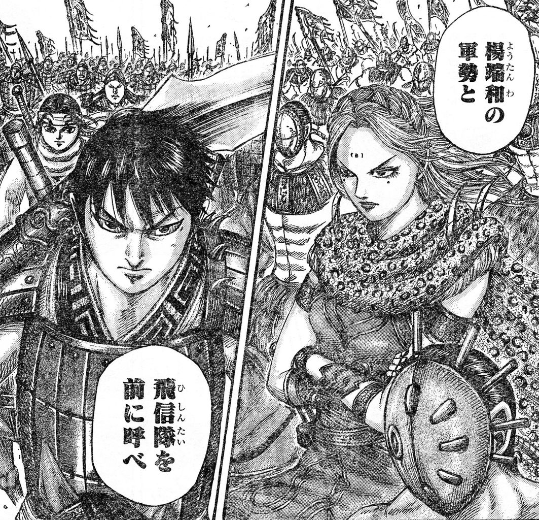 王騎の矛があるせいか、最後のページの信とキョウカイがまるで王騎と騰みたいでよかね