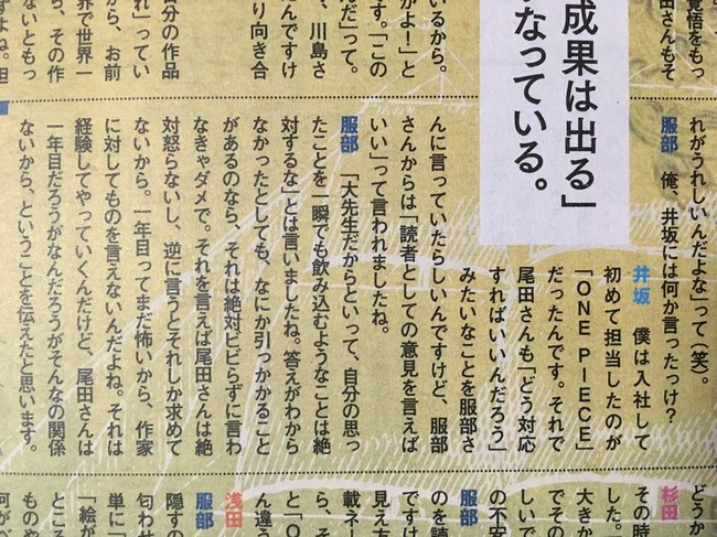 尾田栄一郎先生「入社1年目の新人が担当編集になった。どうすりゃいいの」