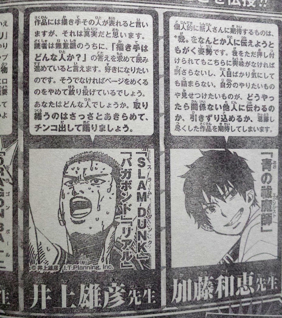 Google+ まんがあんてな: 【悲報】「スラムダンク」井上雄彦先生、新人漫画家へのアドバイスでスベるwwwww【画像】