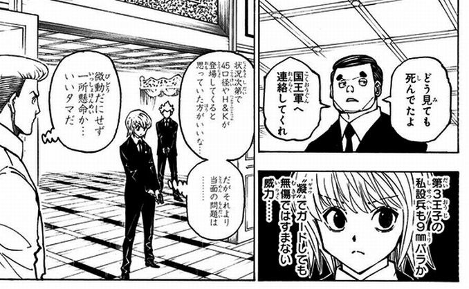 まんがあんてな: 【HUNTER×HUNTER】クラピカ「9mmパラか “凝”でガードしても無傷ではすまない威力……」