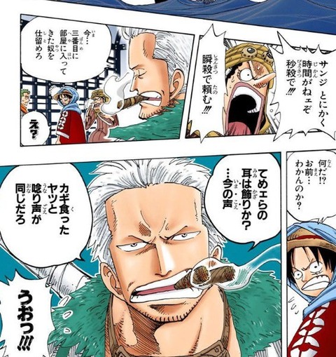 まんがあんてな: 【ワンピース】スモーカー「てめェらの耳は飾りか?今の声、カギ食ったヤツと唸り声が同じだろ」