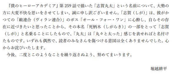 ヒロアカの丸太問題、集英社が謝罪コメントを発表