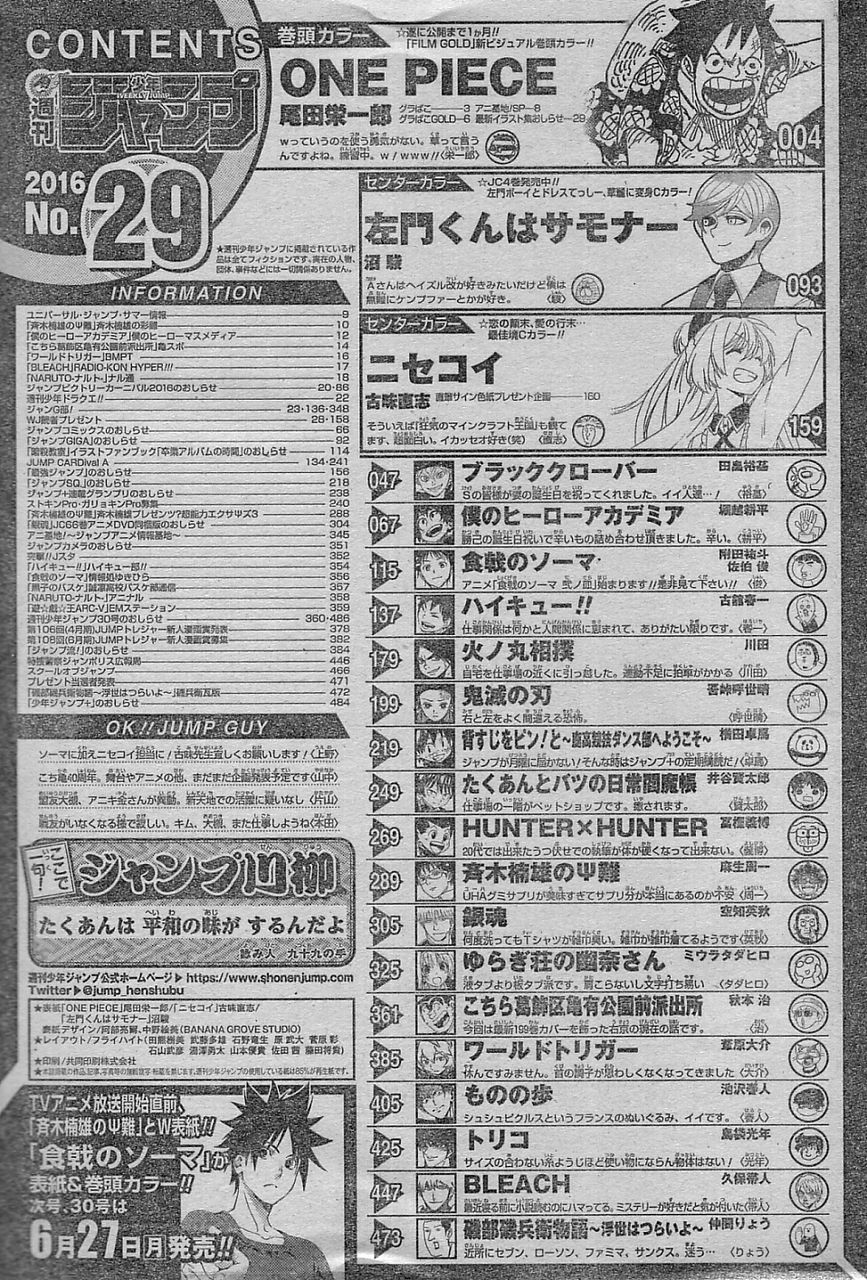 まんがあんてな: 【悲報】来週の「週刊少年ジャンプ」の掲載順がヤバい!!【画像】